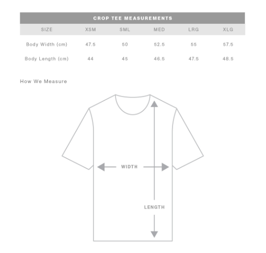 Short body, dropped shoulders, neck ribbing, side seamed, shoulder to shoulder tape,